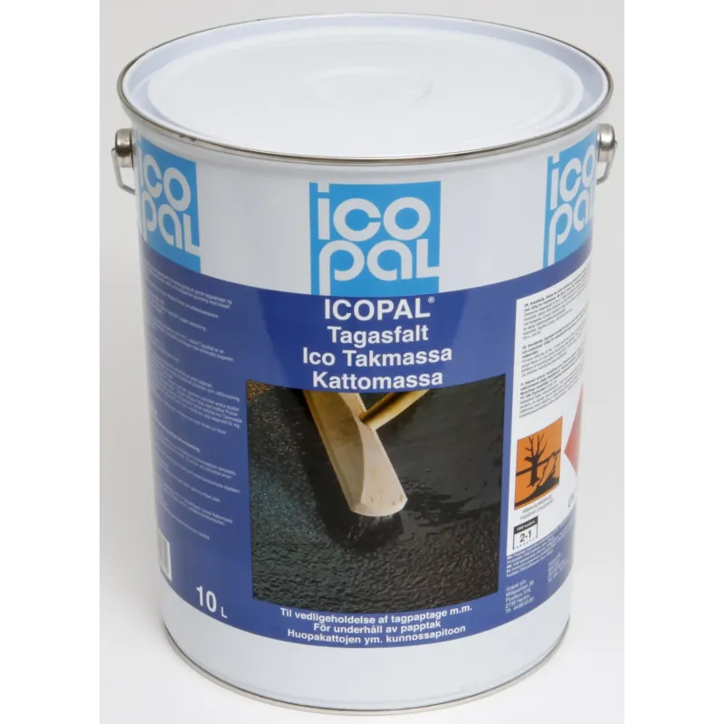 Vi har fundet Icopal Tagasfalt – Lt fra Icopal hos Homeshop.dk i kategorien Byggematerialer Tag Facade Tagtilbehør. Koldflydende asfalt tilsat fibre og anvendes til overstrygning i forbindelse med vedligeholdelse af tagpaptage. Forbrug ca. 0,5-1,0 ltr. pr. m2.