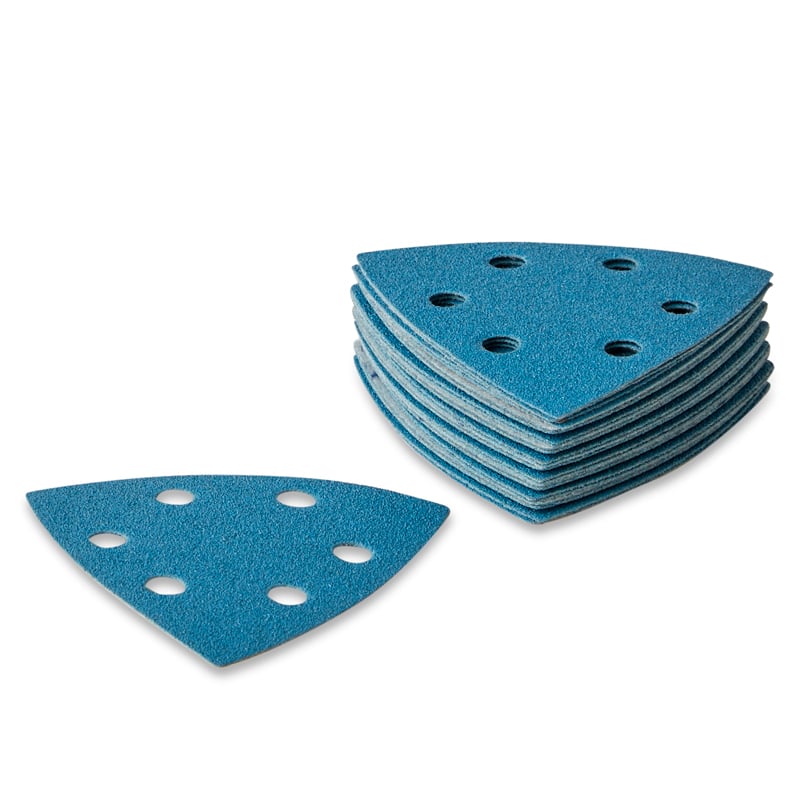 Cool Abrasives Cool Blue trekantslibeark 93x93x93 mm er udviklet til præcis og effektiv slibning på svært tilgængelige områder og hjørner, hvor almindelige slibeark ikke kan komme til.Arkene passer til d